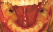 著しい叢生ならびに下顎中切歯の咬合性外傷